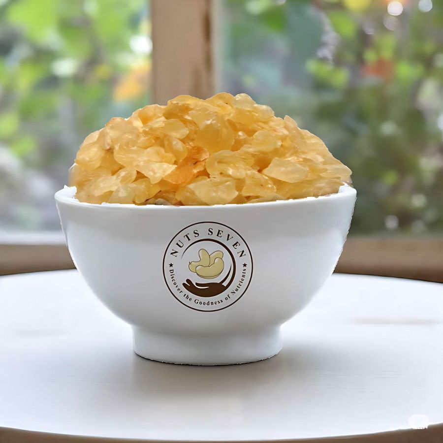 Badam Pisin (also known as Almond Gum) is a natural gum obtained from the bark of the almond tree. It's commonly used in traditional Indian and Ayurvedic drinks and desserts for its cooling properties. When soaked in water, it swells into a jelly-like texture.